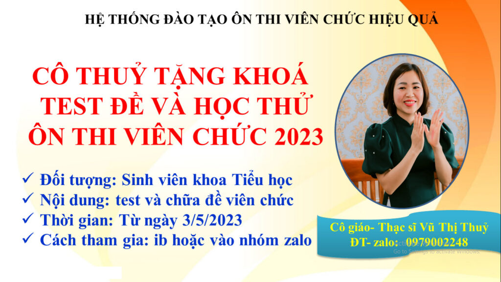 Đăng kí với cô Thuỷ qua số ĐT: 0979002248 ( Cô Vũ Thị Thuỷ- Thạc sĩ – Quản lí trường Tiểu học- chuyên gia đào tạo ôn thi viên chức)