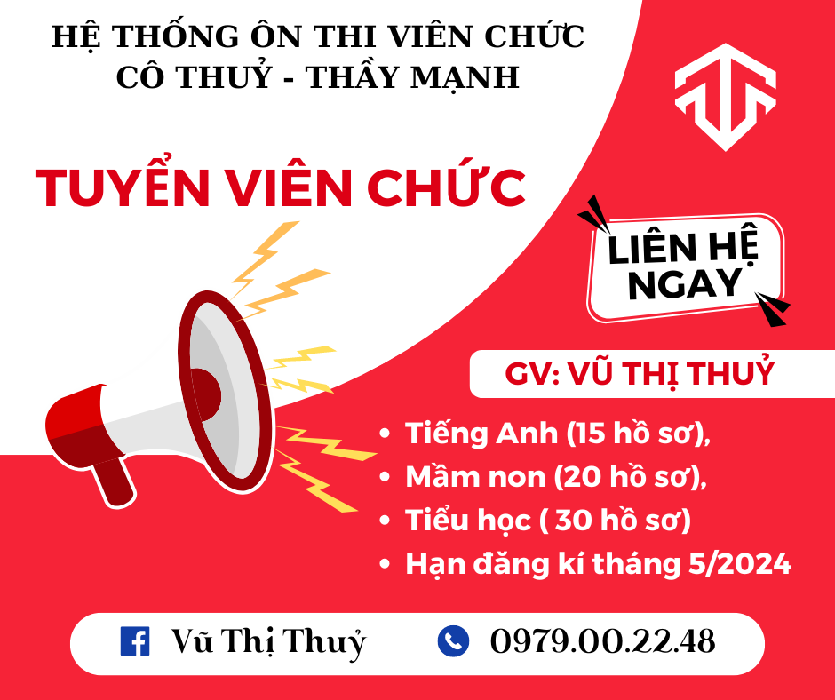 Đừng bỏ lỡ cơ hội nâng cao kiến thức và kỹ năng của mình để thành công trong kỳ thi viên chức sắp tới. Hãy nhanh tay đăng ký để đảm bảo một suất trong khóa ôn thi của chúng tôi!